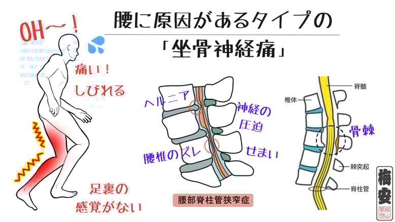 なぜ「脊柱管狭窄症」で「坐骨神経痛」が起きるのか?